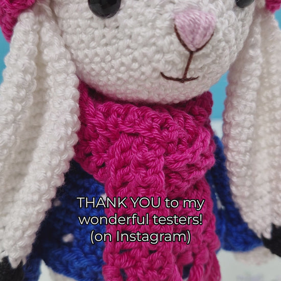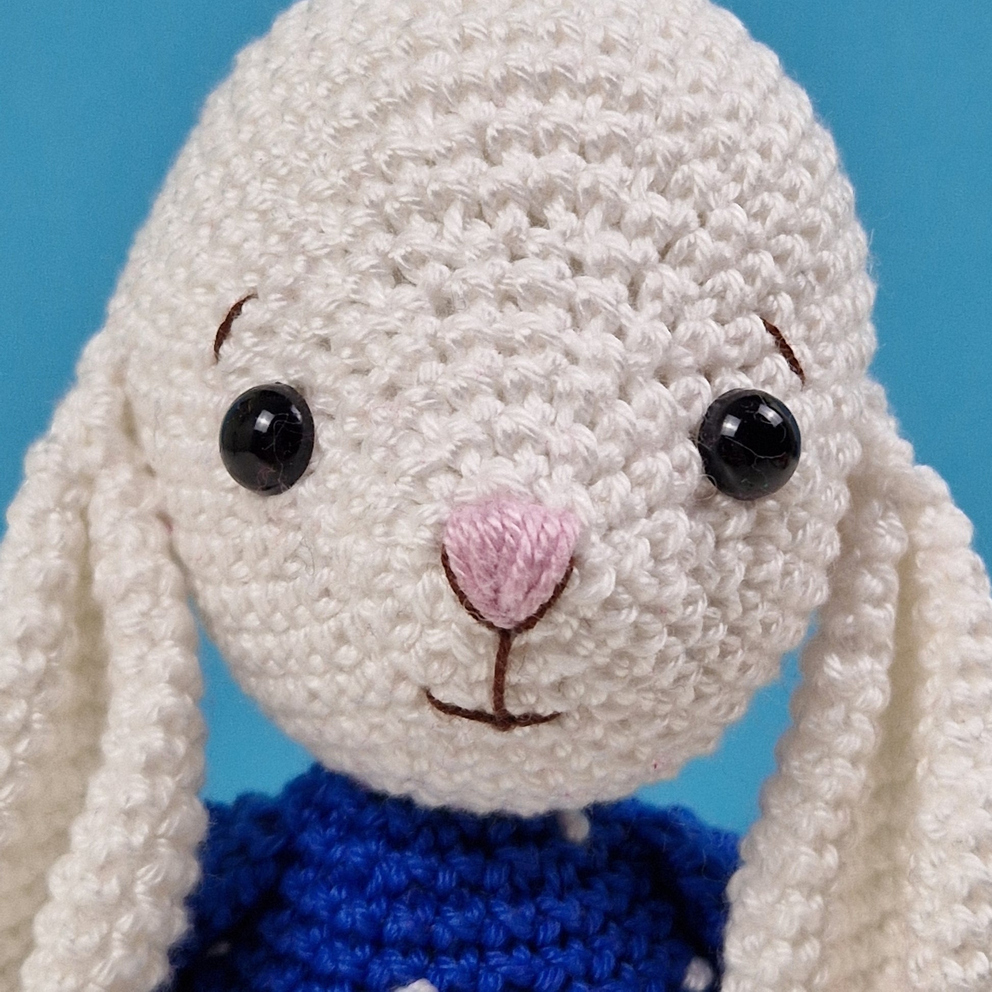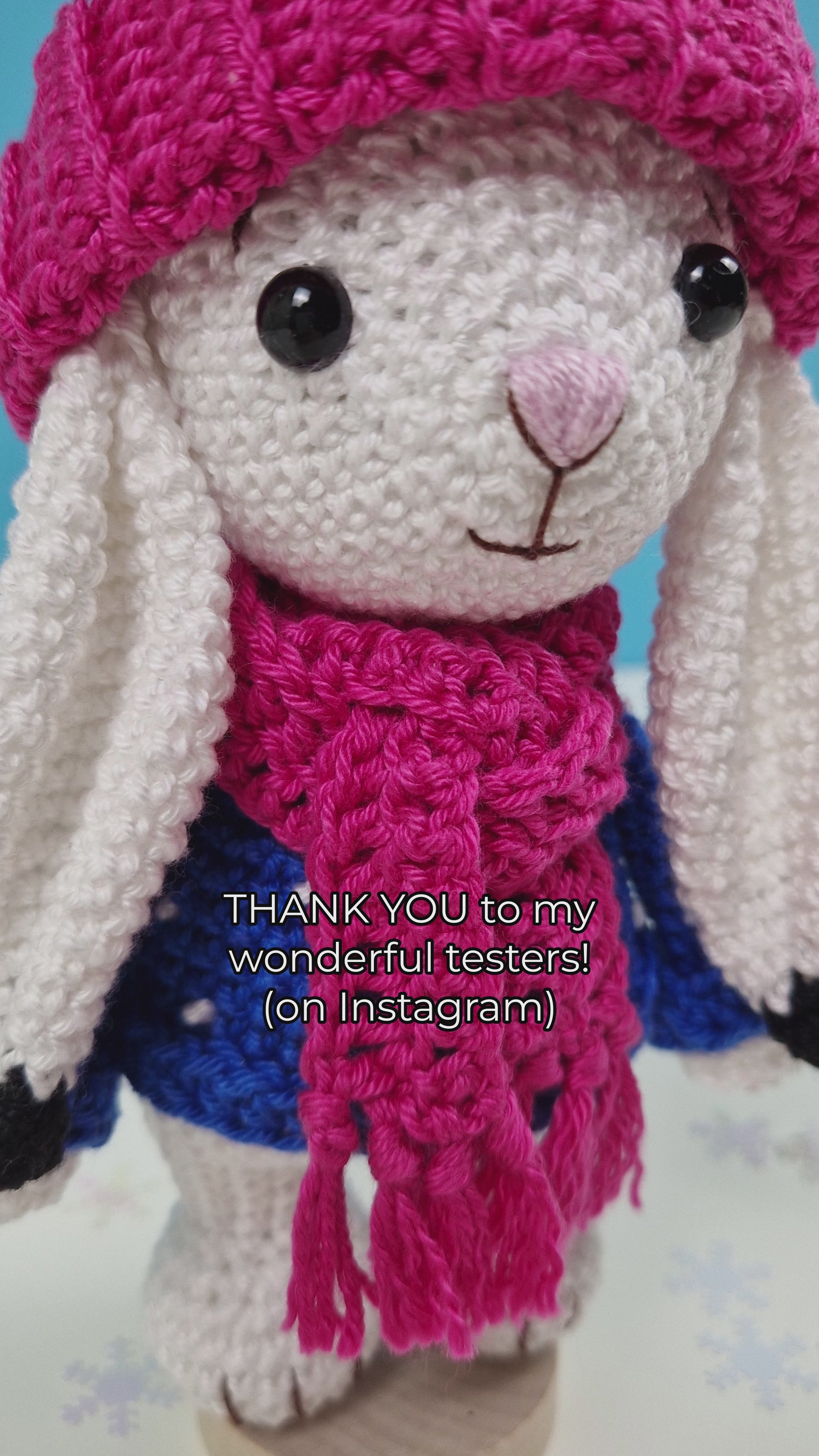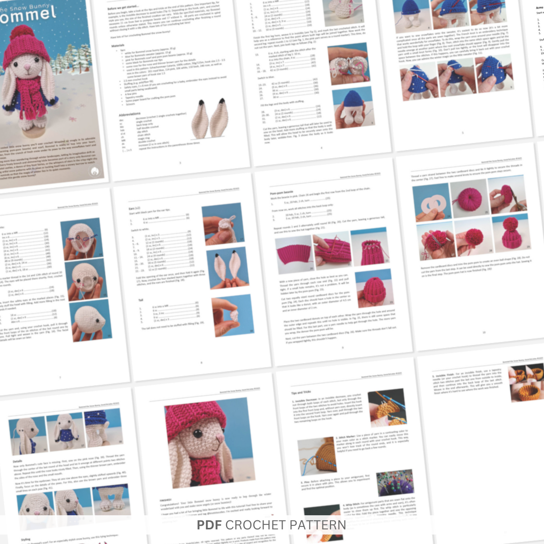If you're familiar with these crochet terms, you'll have a lot of fun with this pattern: half double crochet, double crochet, increase, decrease, slip stitch, chain stitch. The pattern includes detailed step-by-step instructions with plenty of photos across fourteen pages, making it easy for you to crochet Bommel the little snow bunny.